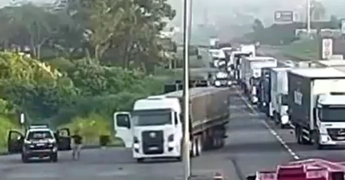 O caminhão foi interceptado após policiais da PRF bloquearem a pista com carretas. Eles posicionaram uma cama de faquir, como é chamada a estrutura de pregos utilizada pela polícia para furar pneus de veículos.