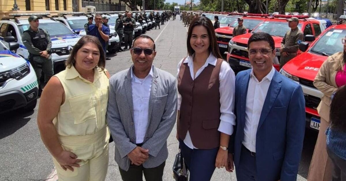 A prefeita de Olinda, Mirella Almeida (PSD), e o assessor especial da Casa Civil, Professor Lupércio (PSD), participaram, na segunda-feira, 17 de novembro, do anúncio de um importante reforço para a área da segurança. Eles acompanharam a entrega de 65 viaturas, um caminhão e um helicóptero para fortalecer as ações da Polícias Militar e Civil, incluindo o Grupamento Tático. O ato aconteceu no Palácio do Campo das Princesas e teve a presença da governadora Raquel Lyra (PSD).