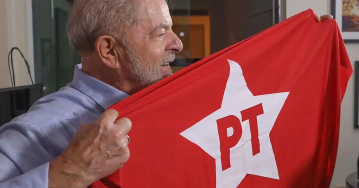 Presidente Lula com a bandeira do PT. Foto: Ricardo Stuckert/PT