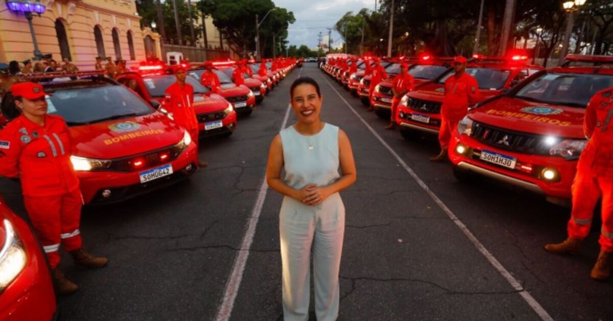Raquel Lyra com viaturas do CBMPE. Foto: Miva Filho/Secom