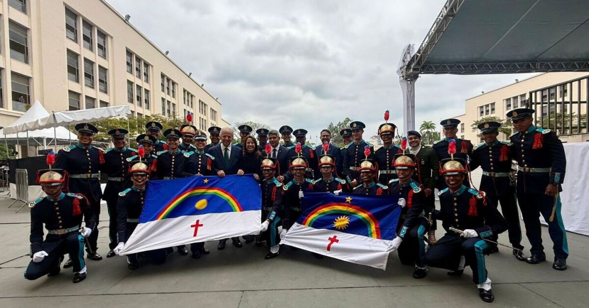 A governadora Raquel Lyra participou, na manhã deste sábado, 16 de agosto, da cerimônia de entrega dos Espadins aos cadetes da Academia Militar das Agulhas Negras (AMAN), em Resende, no Rio de Janeiro. Ao lado do ministro da Defesa, José Múcio Monteiro, a gestora, única chefe de estado presente, entregou em mãos, simbolicamente, o espadim a dois dos 14 cadetes pernambucanos que estão iniciando na carreira militar.