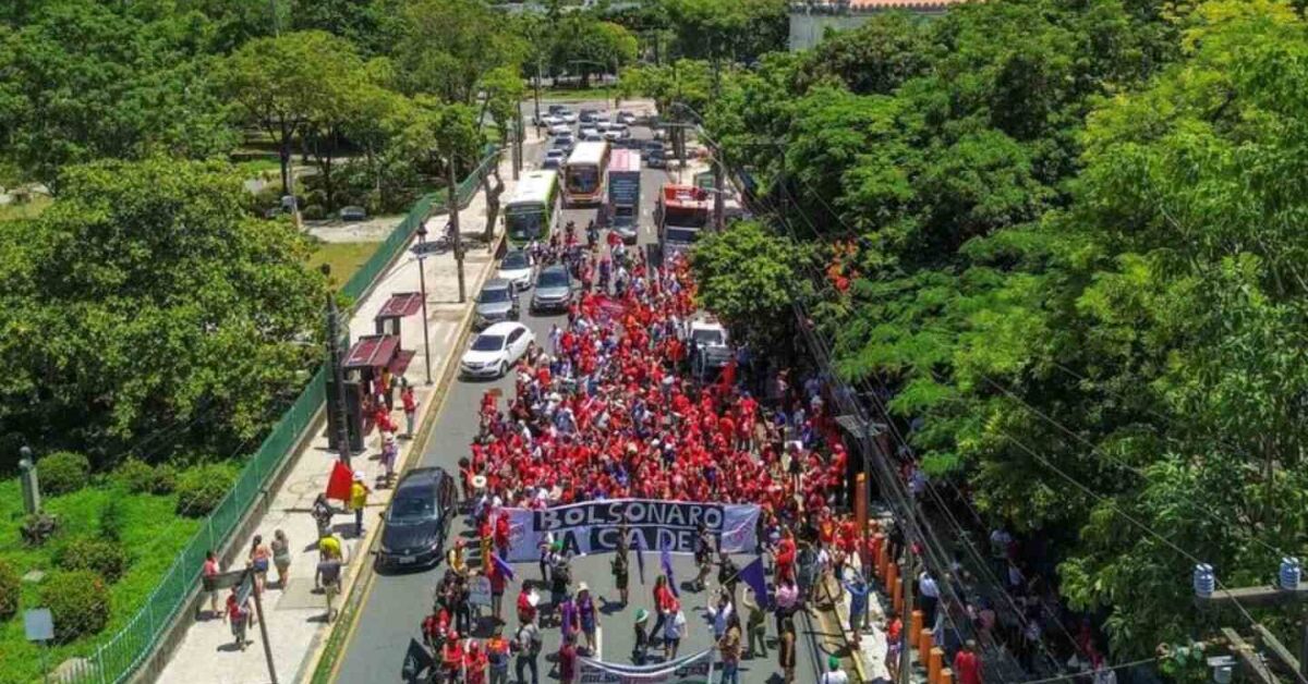 O ato, organizado pela Central Única dos Trabalhadores (CUT), reuniu centenas de pessoas na Praça 13 de Maio, no bairro da Boa Vista, região central da capital pernambucana.
