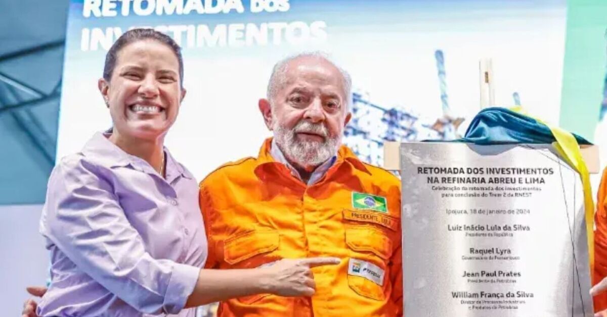 No início deste ano, a governadora esteve com o presidente Lula na Rnest, quando participaram da cerimônia de anúncio da retomada de investimentos para a refinaria.
