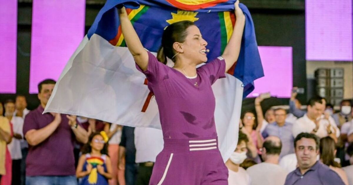Raquel Lyra segurando a bandeira de Pernambuco. Foto: Divulgação