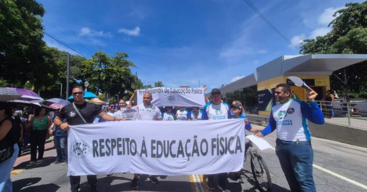 Profissionais da Educação física em protesto no Recife. Foto: Divulgação