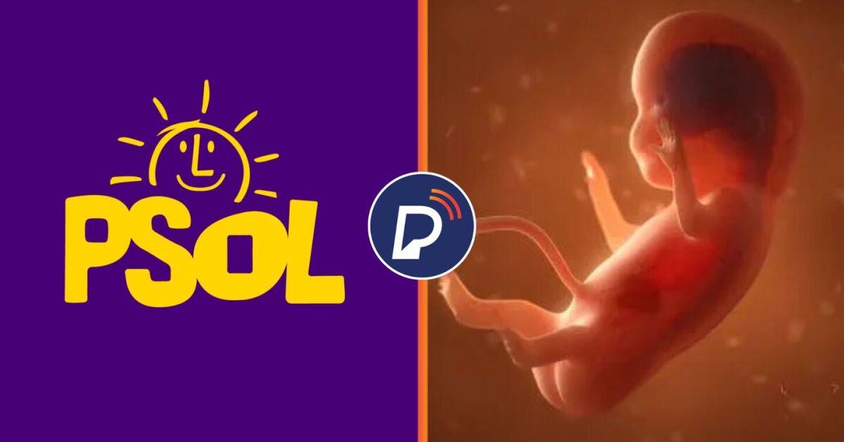 Logomarca do PSOL e imagem de feto. Fotos: Divulgação e Shutterstock