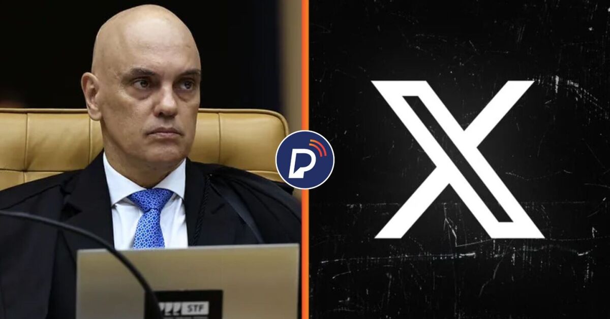 Ministro do STF, Alexandre de Moraes e logo da rede socail X (antigo Twitter). Foto: Arte/Portal de Prefeitura