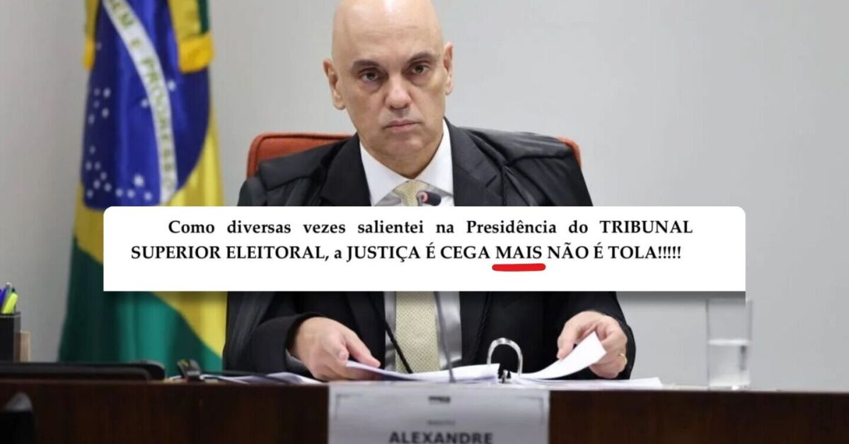 "Como diversas vezes salientei na Presidência do TRIBUNAL SUPERIOR ELEITORAL, a JUSTIÇA É CEGA MAIS [sic] NÃO É TOLA!!!!!", escreveu Moraes.