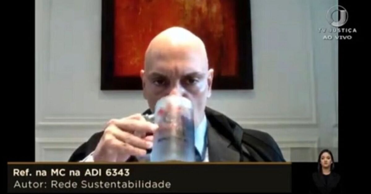 Ministro Alexandre de Moraes com caneca do Corinthians. Foto: Reprodução/ TV Justiça