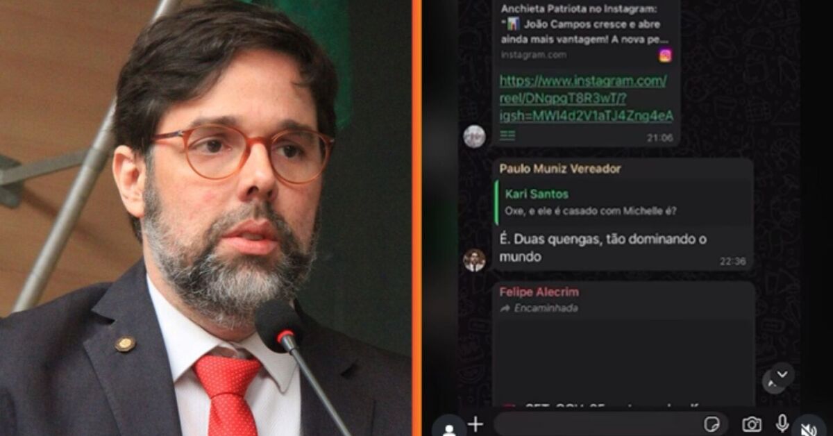 Mensagens atribuídas ao vereador e presidente do PL Recife, Paulo Muniz, mostram o parlamentar chamando a ex-primeira-dama Michelle Bolsonaro de "quenga", expressão popular de cunho pejorativo.