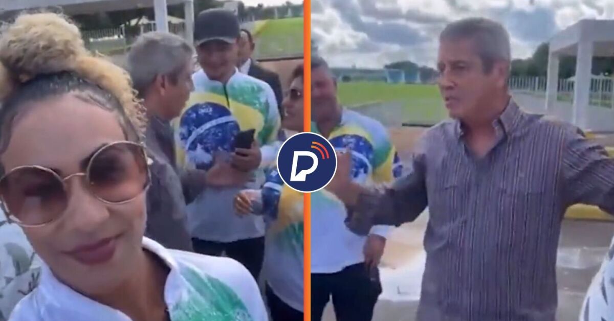 No registro, Braga Netto conversa com um grupo que clamava por intervenção militar e, apesar de inicialmente afirmar que não falaria com a imprensa, foi até conversar com os apoiadores.