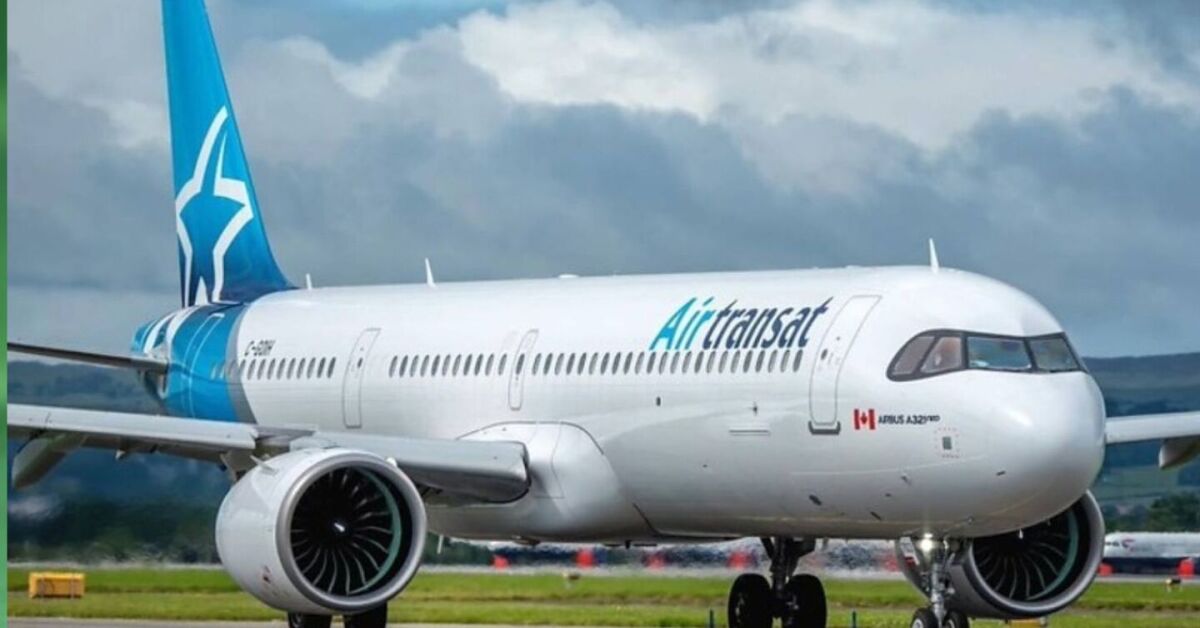 Aeronave da Air Transat no pátio: companhia inicia voos diretos do Rio para Toronto e Montreal em 2026. Foto: Divulgação/ Air Transat