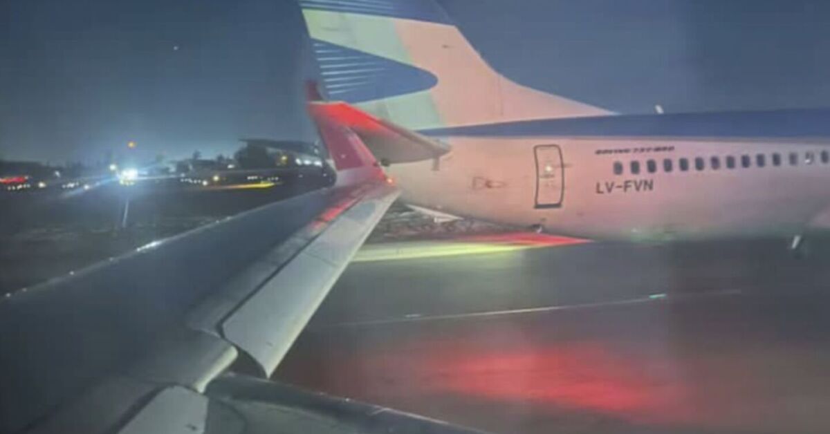 De acordo com a Latam Airlines, a colisão ocorreu durante o táxi do voo LA756, que se preparava para decolar com destino a São Paulo.