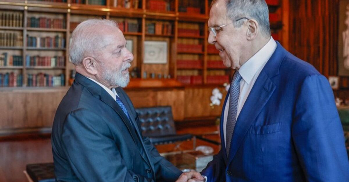 Lula e chanceler russo Seguei Lavrov, apertando as mãos. Foto: Ricardo Stuckert/PR