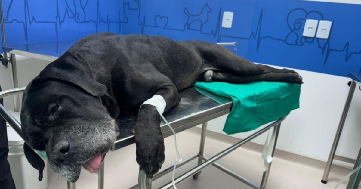 Scooby, o cão baleado durante megaoperação no Rio, espera cirurgia para retirada de projétil Foto: Divulgação