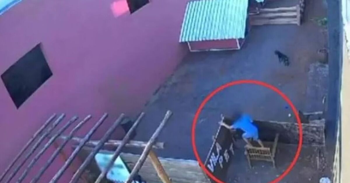 Criança invadindo hospital veterinário. Foto: Reprodução