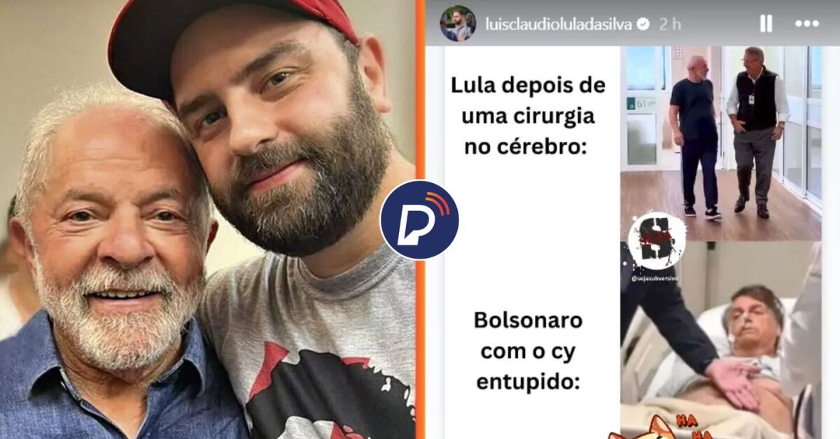 Luis Claudio Lula da Silva, filho mais novo do presidente Luiz Inácio Lula da Silva (PT), publicou um meme em seus stories do Instagram na sexta-feira, 13 de dezembro, que contrasta as internações de seu pai e do ex-presidente Jair Bolsonaro (PL).