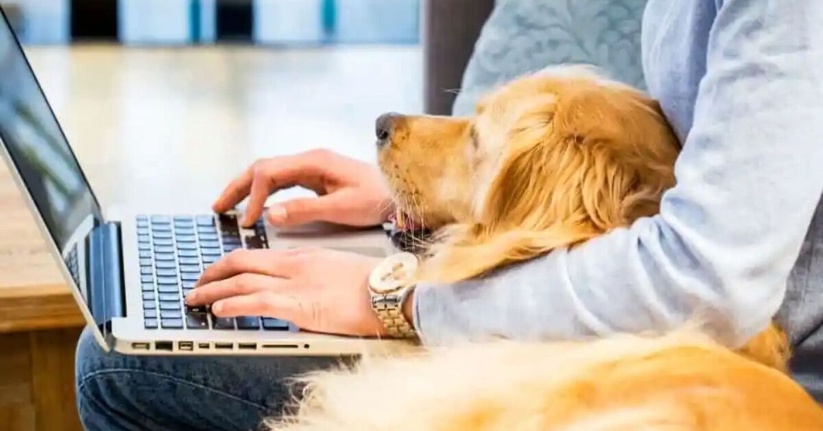 Homem em home office com seu cachorro. Foto: Divulgação