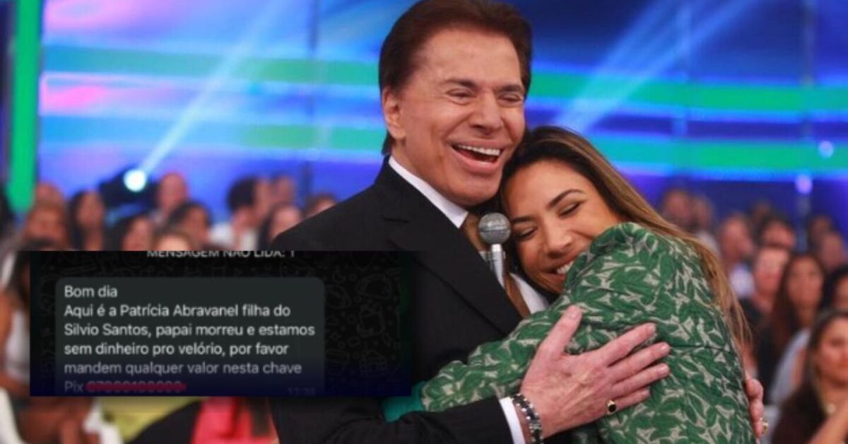 "Bom dia. Aqui é Patrícia Abravanel, filha do Silvio Santos, papai morreu e estamos sem dinheiro pro velório. Por favor, mandem qualquer valor nesta chave Pix", diz a mensagem enviada por golpistas.