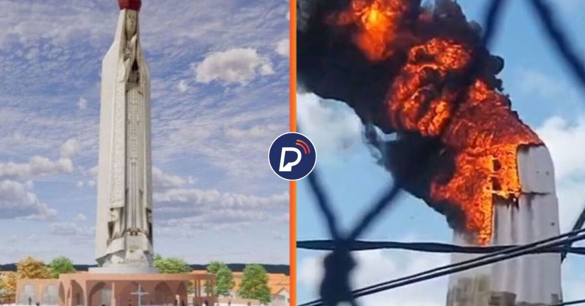 Um incêndio de grandes proporções destruiu, na tarde desta terça-feira, 24 de fevereiro, a estátua de Nossa Senhora de Fátima que estava em construção no bairro de Pajuçara, na Zona Norte de Natal.