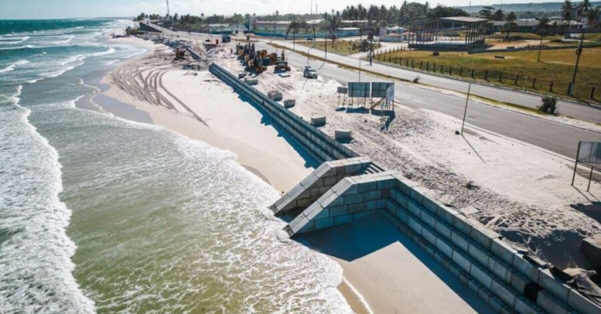 Obra inédita visa conter erosão e ampliar segurança da orla alargada. Créditos: Divulgação/Reprodução