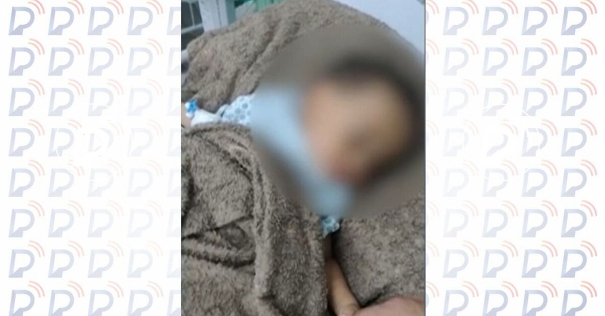 Bebê resgatado por policiais. Foto: Reprodução. Arte: Portal de Prefeitura