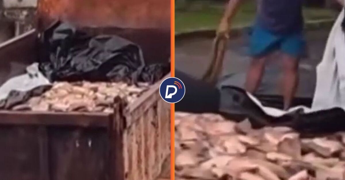 Prefeitura causa revolta ao distribuir peixe da Semana Santa para população em caçamba de lixo Foto: Reprodução