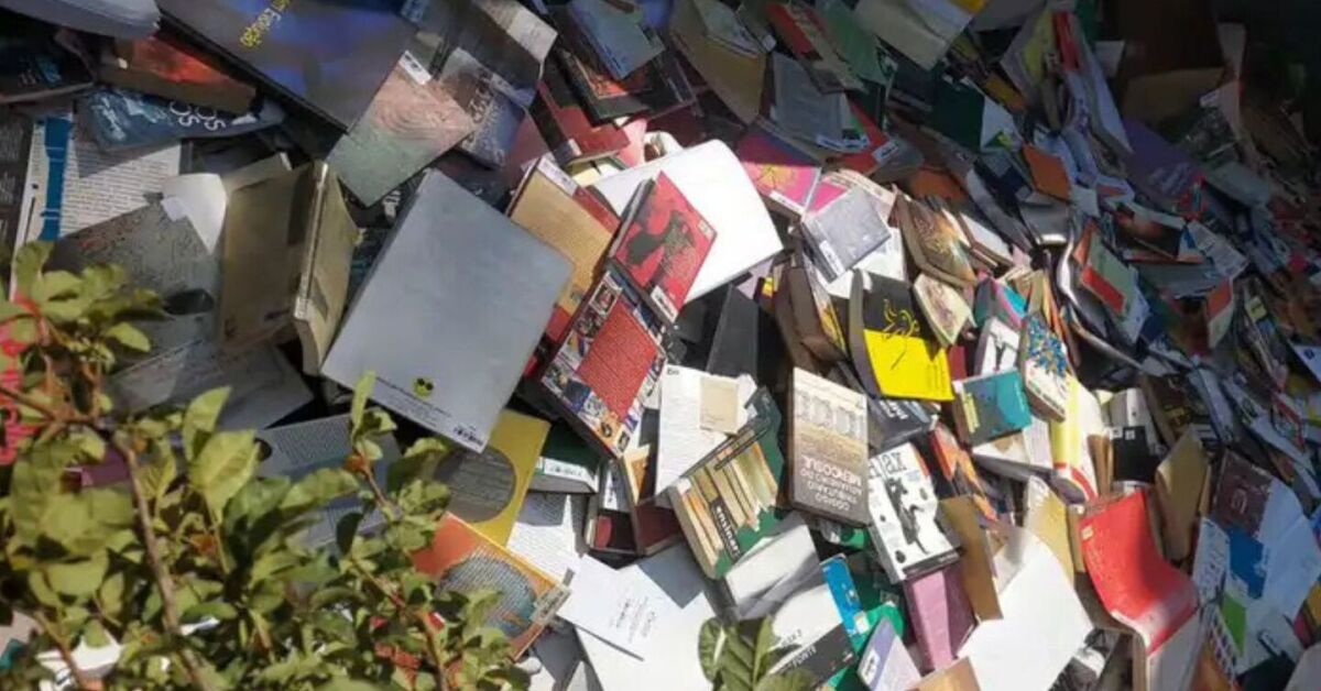 Prefeitura joga centenas de livros de biblioteca pública no lixo Foto: Reprodução / Cadu Simons