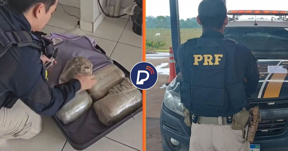 PRF prende passageira que transportava cerca de 13 Kg de skunk em ônibus Foto: Divulgação/PRF