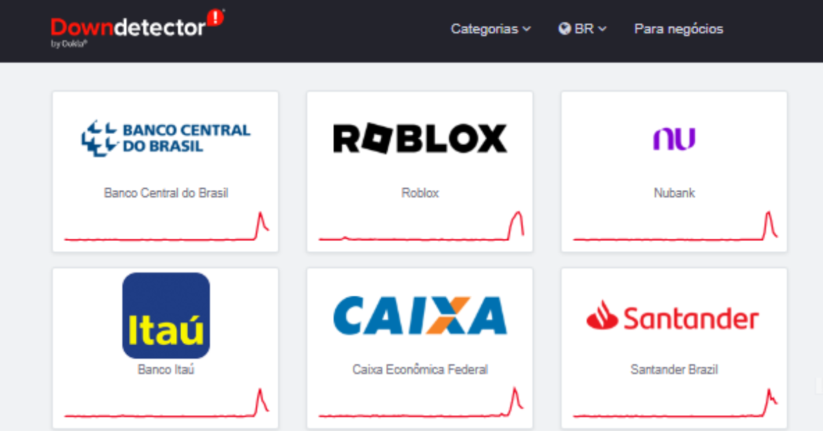 Segundo o DownDetector, que monitora em tempo real falhas em serviços, foram relatados problemas em bancos como Nubank, Inter, Itaú, Caixa Econômica Federal, Bradesco, Santander, Banco do Brasil e outros.