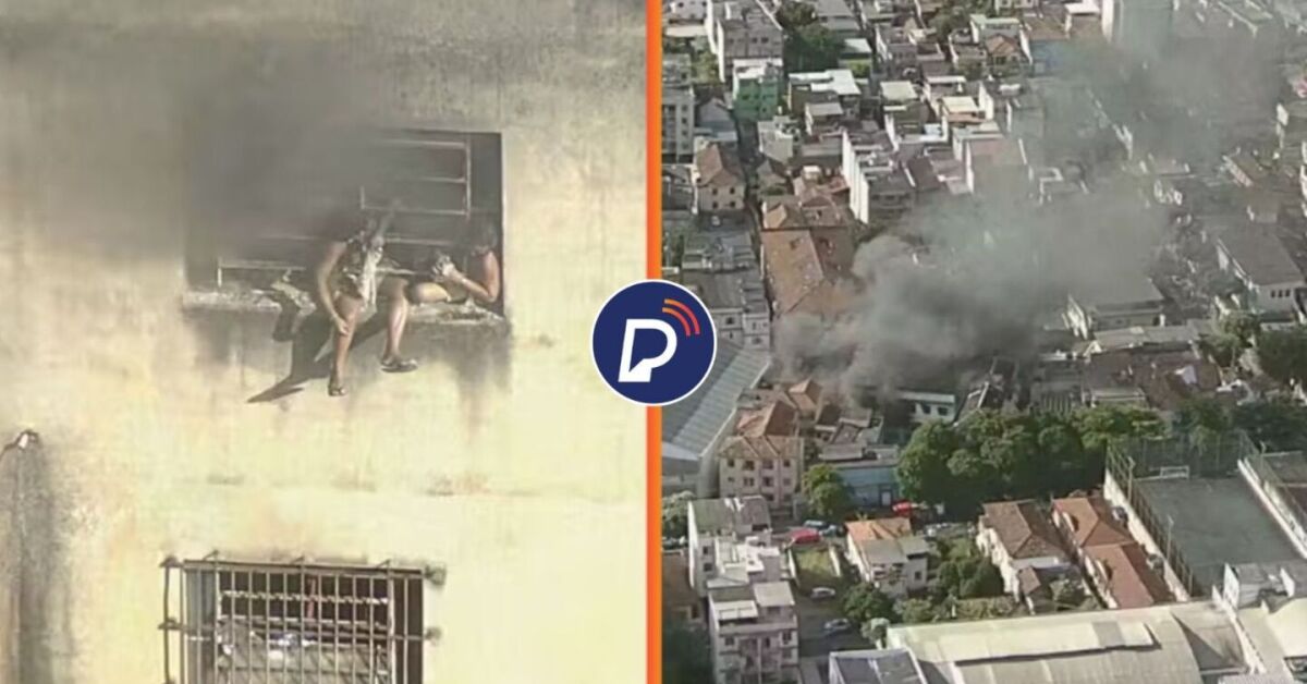 O Globocop registrou um dos momentos mais dramáticos, capturando imagens de quatro ocupantes do prédio refugiados na parte externa de uma janela, cercados por uma densa fumaça negra.