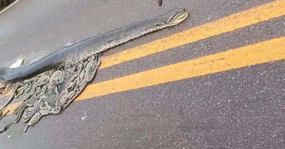 O acidente resultou na expulsão de aproximadamente 40 filhotes da barriga da cobra, todos também mortos.