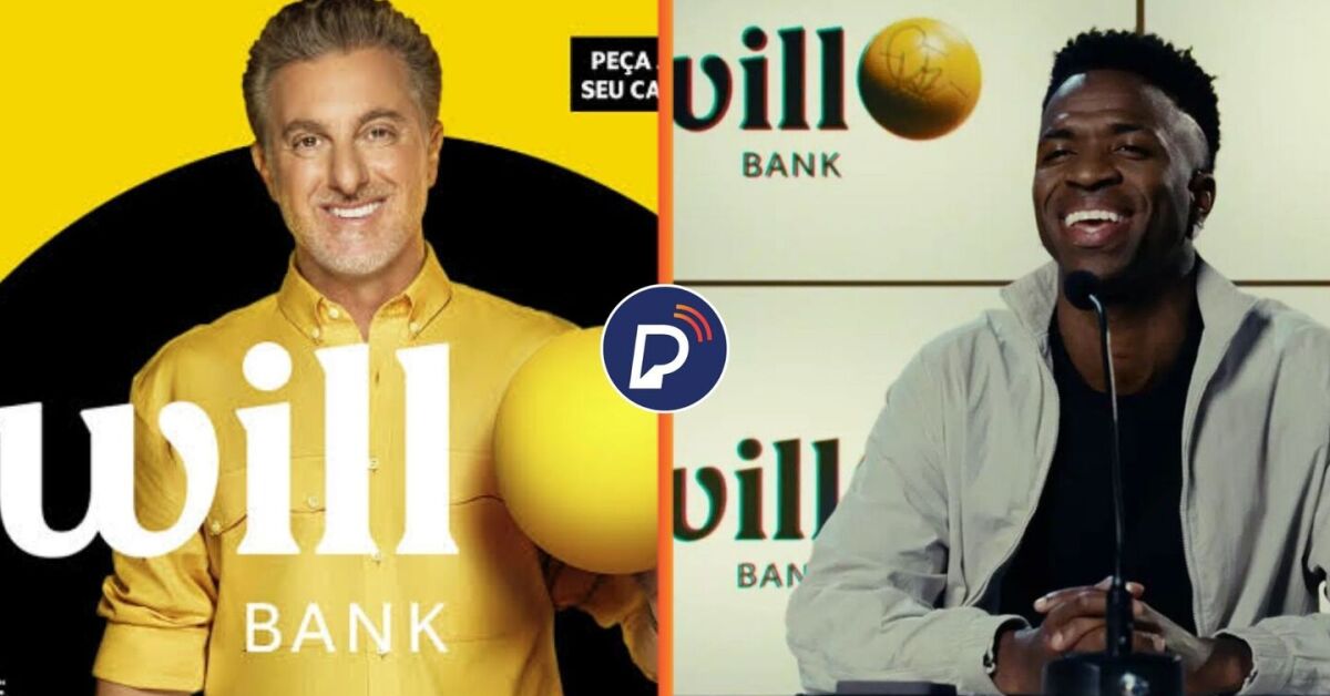 Luciano Huck e Vini Jr em propagandas da Will Bank. Fotos: Divulgação. Arte: Portal de Prefeitura
