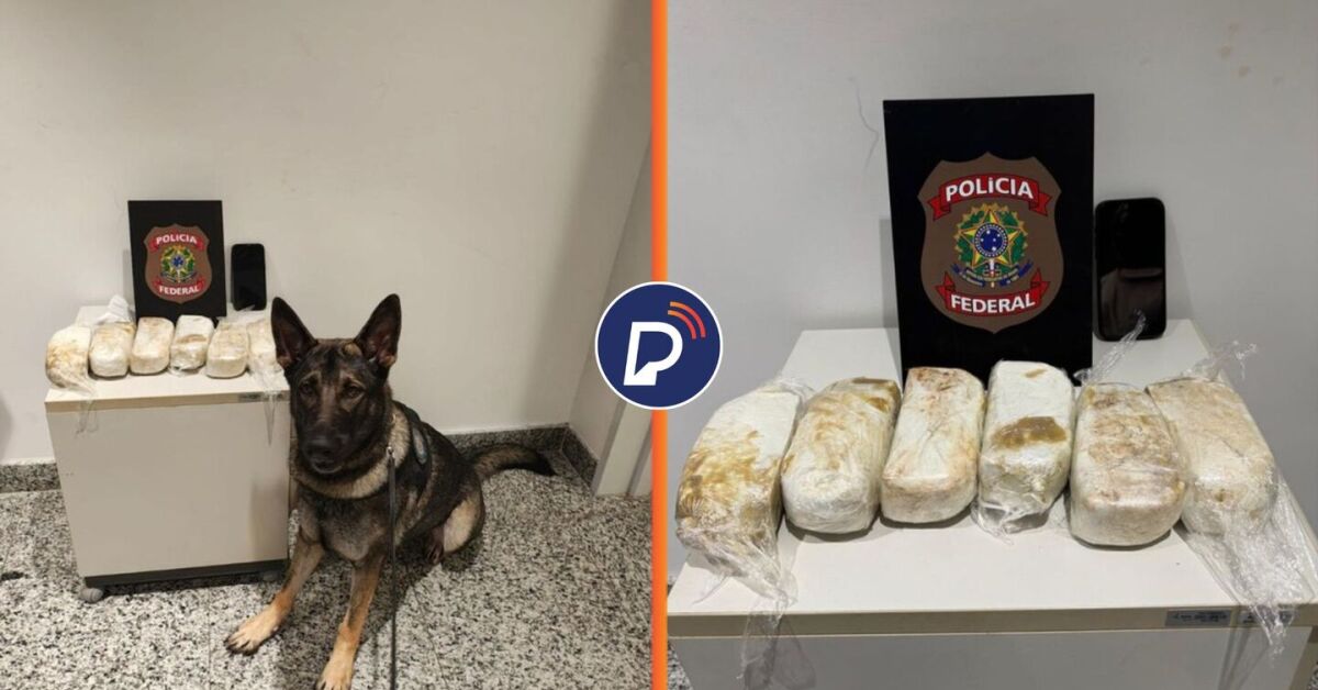 Apreensão feita com ajuda de cão farejador no Aeroporto do Recife. Fotos: Divulgação. Arte: Portal de Prefeitura