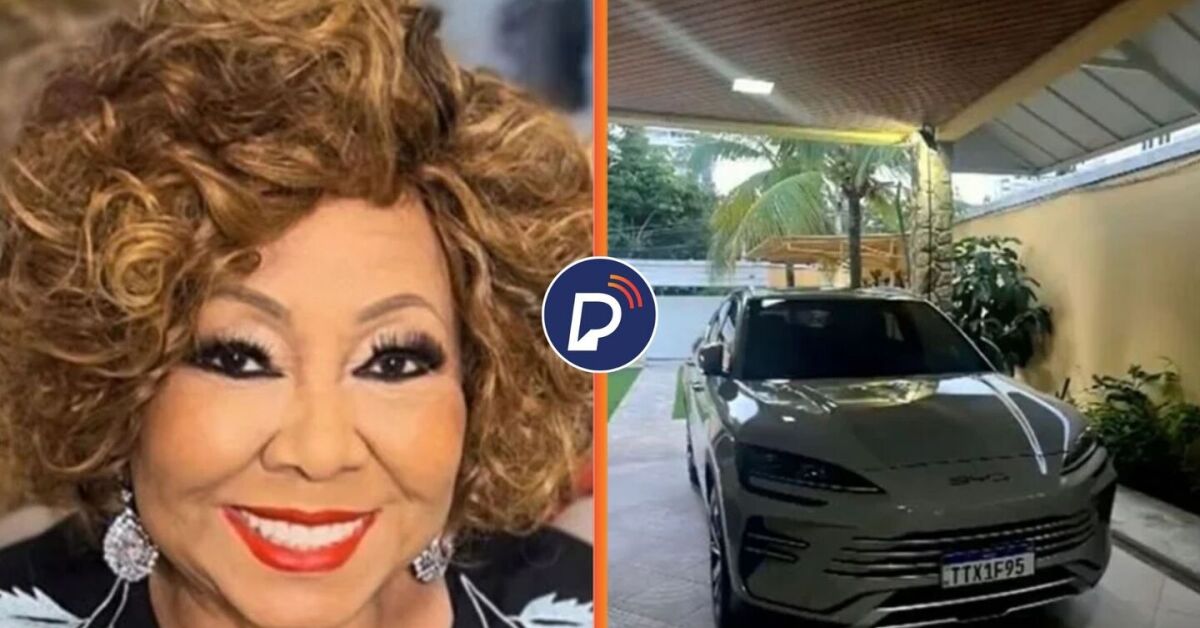 Cantora Alcione e carro BYD que foi roubado. Fotos: Reprodução. Arte: Portal de Prefeitura