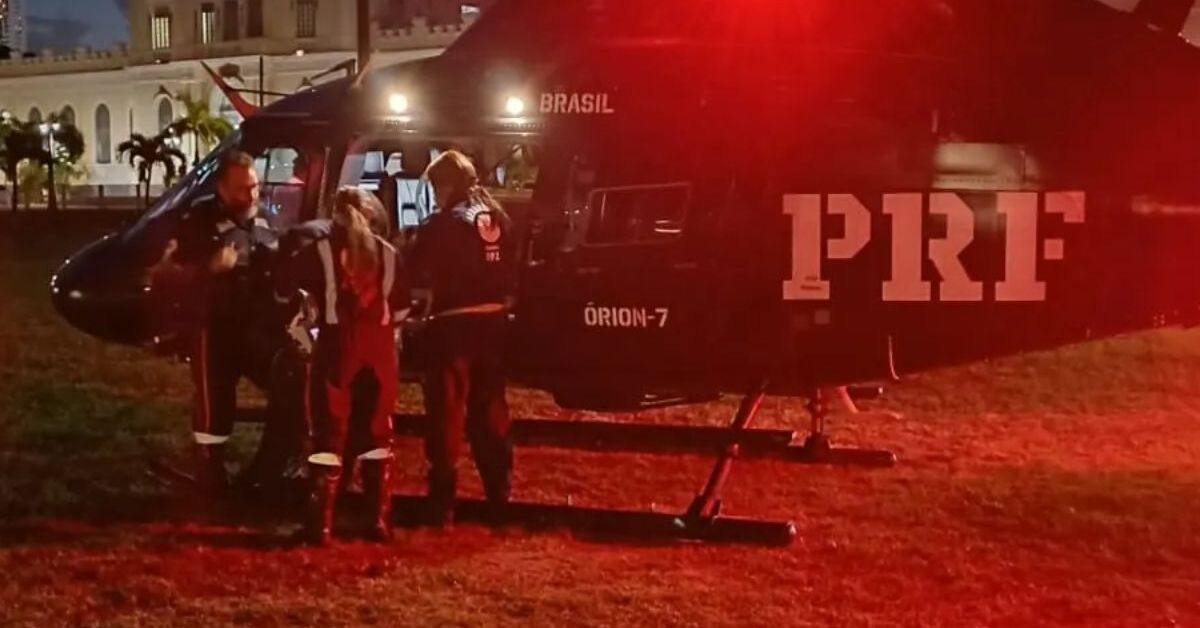 Helicóptero da PRF atuou no resgate. Foto: Divulgação