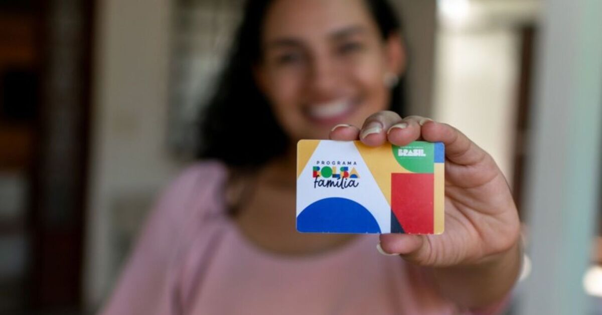 Mulher segurando cartão do Bolsa Família. Foto: Lyon Santos/MDS