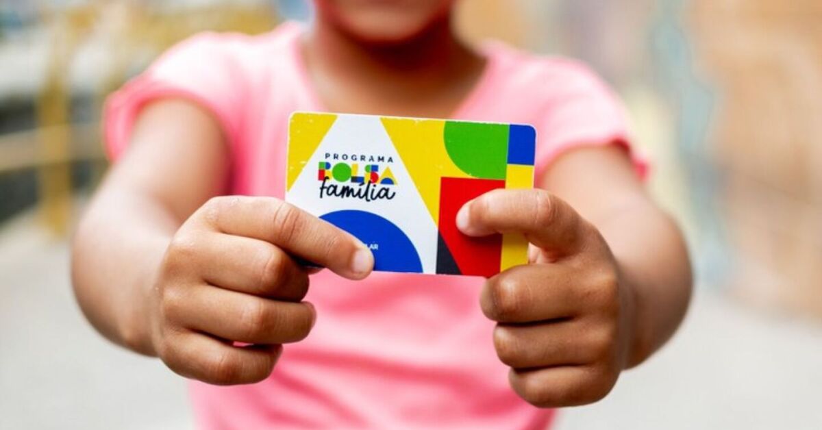 Criança segurando cartão do Bolsa Família. Foto: Lyon Santos/MDS
