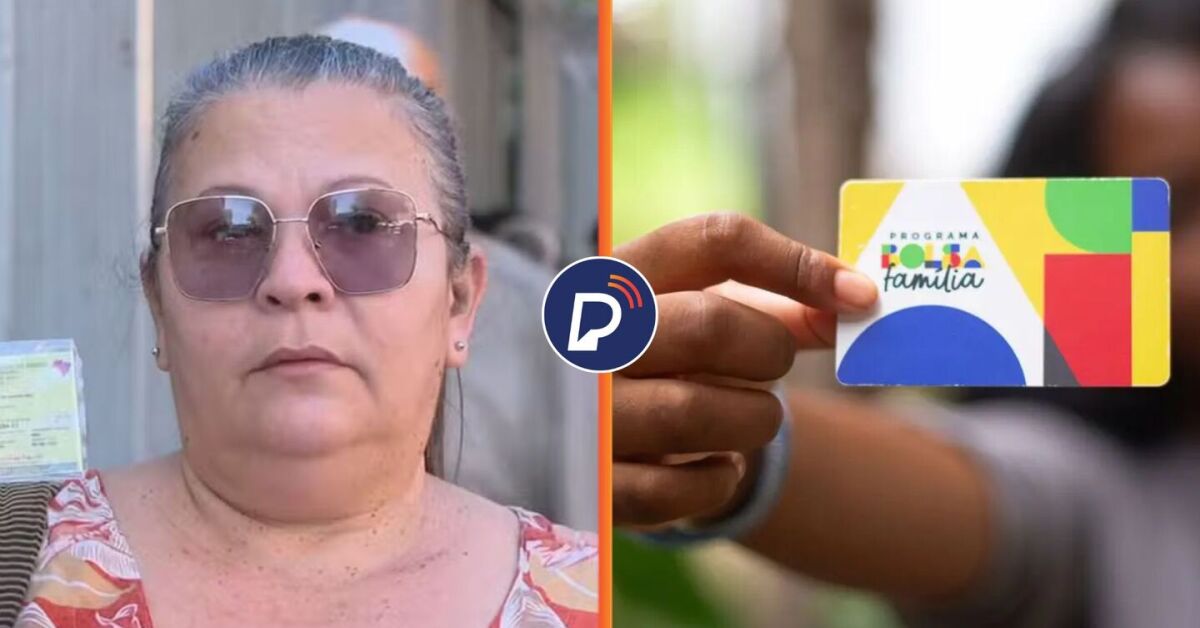 Mulher que ficou sem receber benefício e pessoa segurando cartão do Bolsa Família. Fotos: Reprodução/g1 e Lyon Santos/MDS. Arte: Portal de Prefeitura
