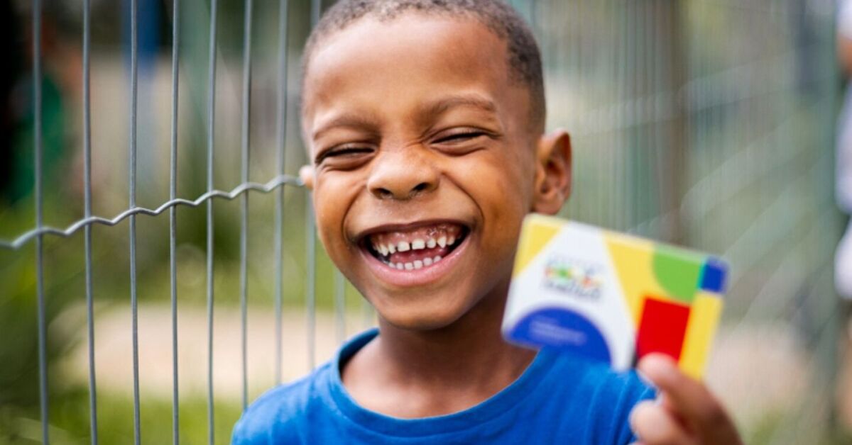 Criança segurando cartão do Bolsa Família. Foto: Lyon Santos/MDS