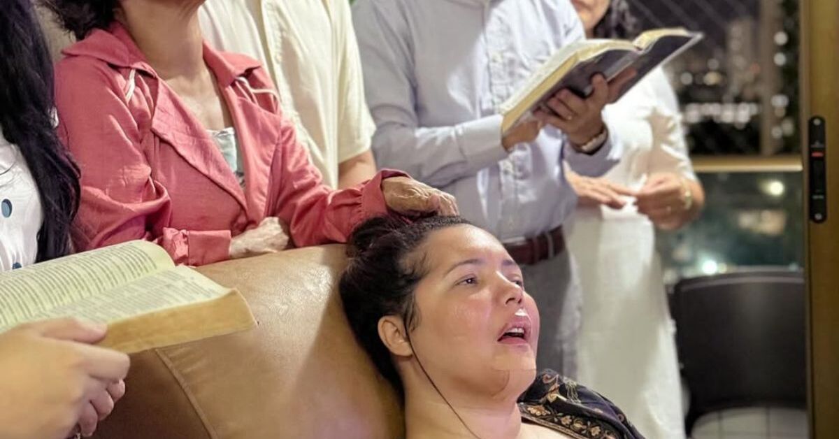 O encontro foi compartilhado nas redes sociais pela irmã da artista, com registros do momento em que os presentes cantaram hinos, fizeram orações e leram trechos da Bíblia.