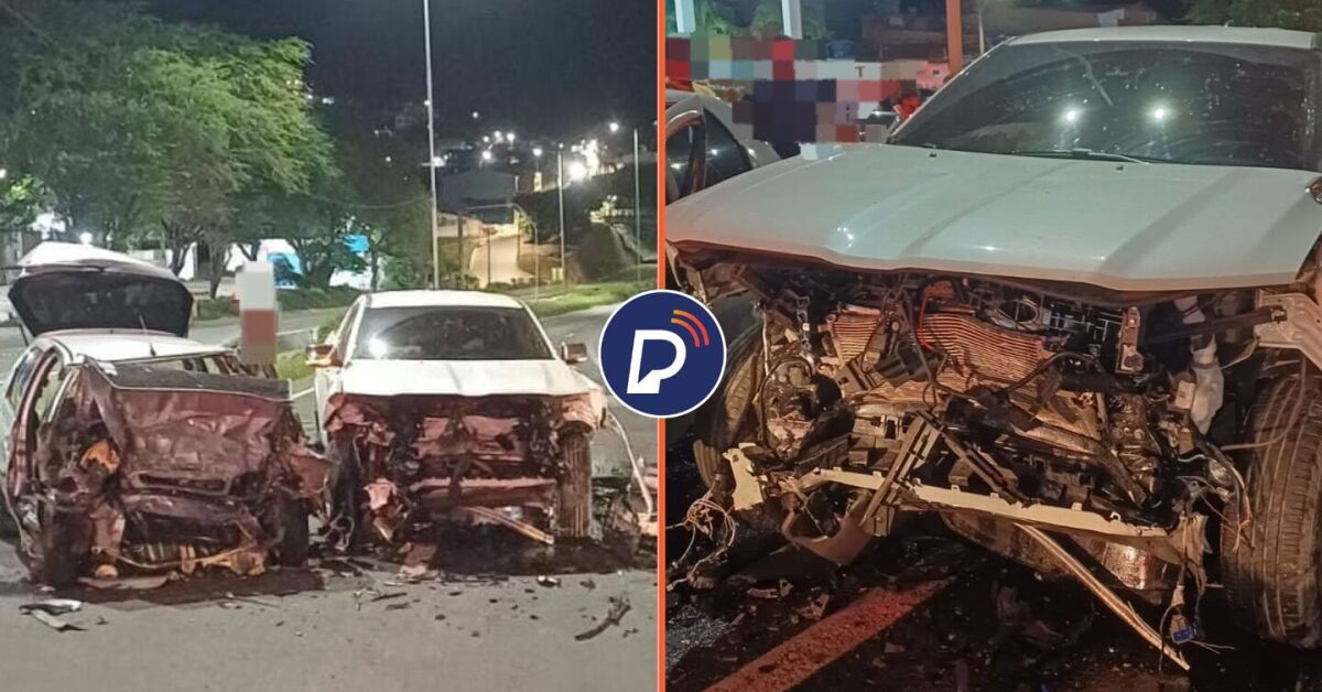 Estado da caminhonete e carro após acidente na BR-232. Fotos: PRF/Divulgação. Arte: Portal de Prefeitura