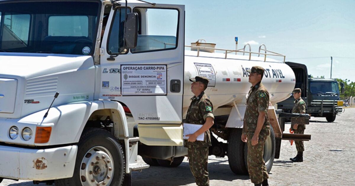 Carro-pipa do Exército e soldados ao lado. Foto: Divulgação