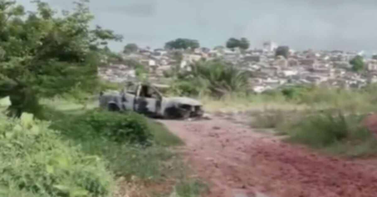Carro carbonizado onde corpo de homem baleado foi achado. Foto: Reprodução
