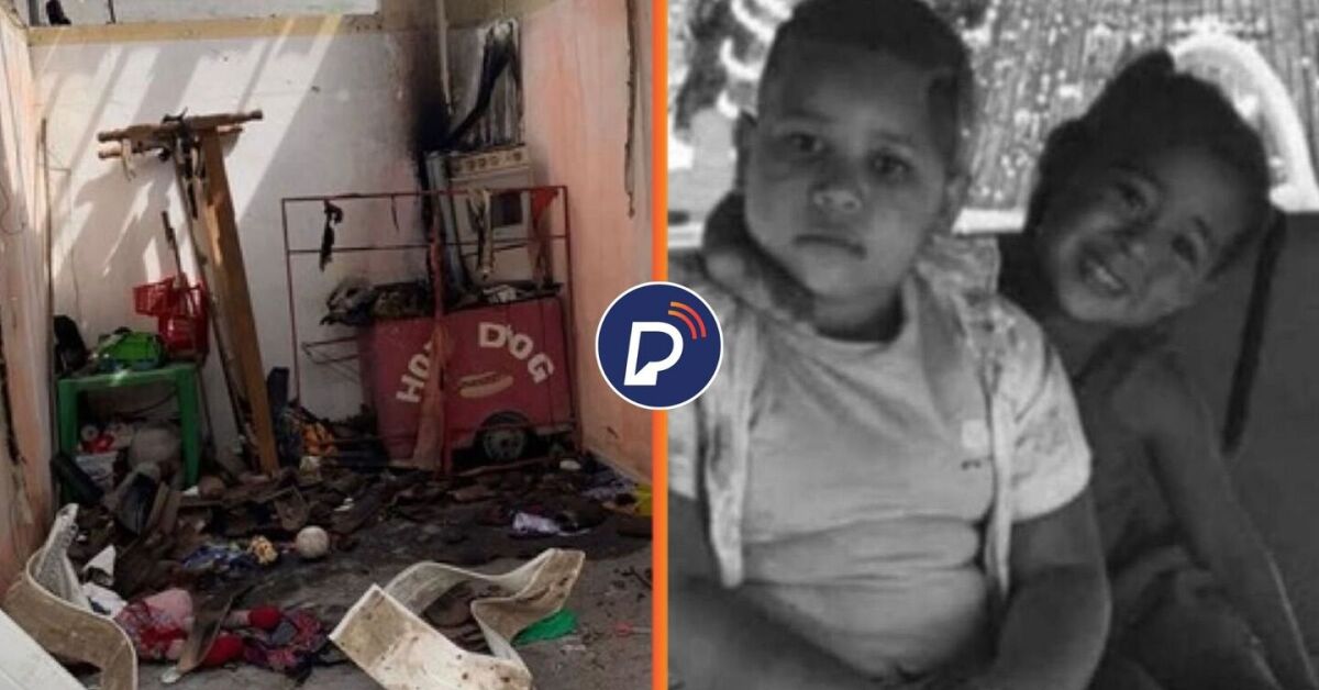 Casa após incêndio e crianças que morreram em decorrência das chamas. Fotos: Reprodução. Arte: Portal de Prefeitura