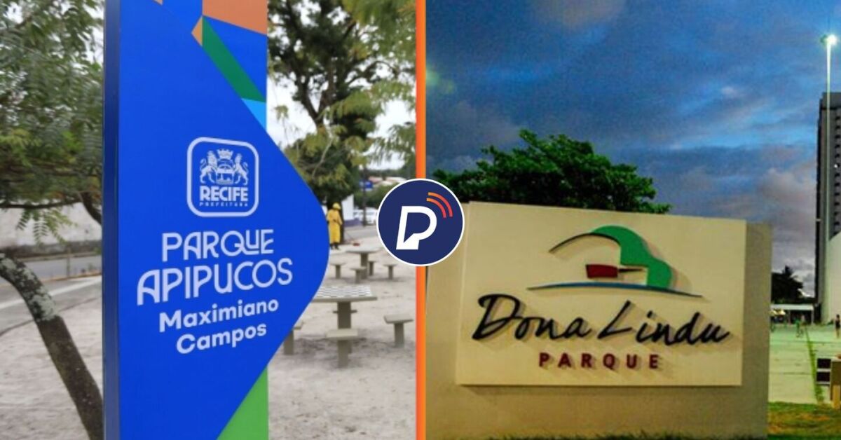 Parque de Apipucos, na Zona Norte, e do Parque Dona Lindu, na Zona Sul do Recife. Fotos: Marlon Diego/PCR e Prefeitura do Recife/Inaldo Linsa. Montagem: Portal de Prefeitura
