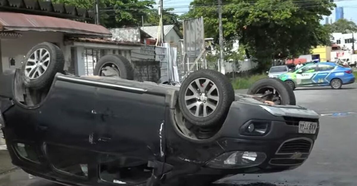 Carro capotado devido alteração da gestão João Campos. Foto: Reprodução/TV Guararapes