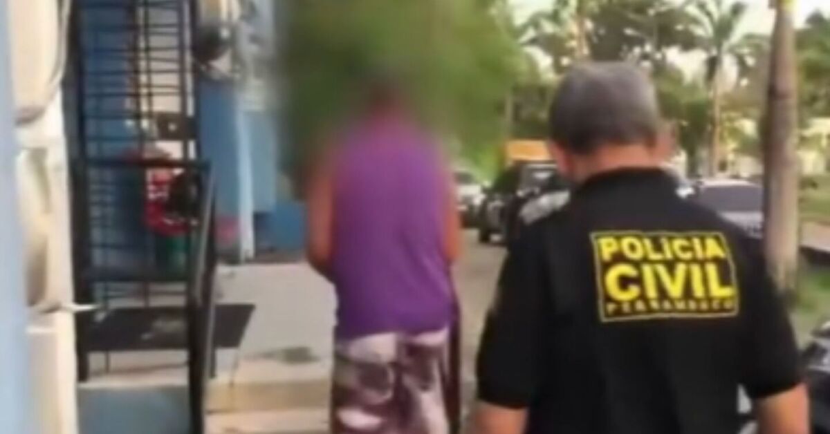 Momento em homem é levado ao DHPP, no Recife. Foto: TV Jornal SBT/Reprodução