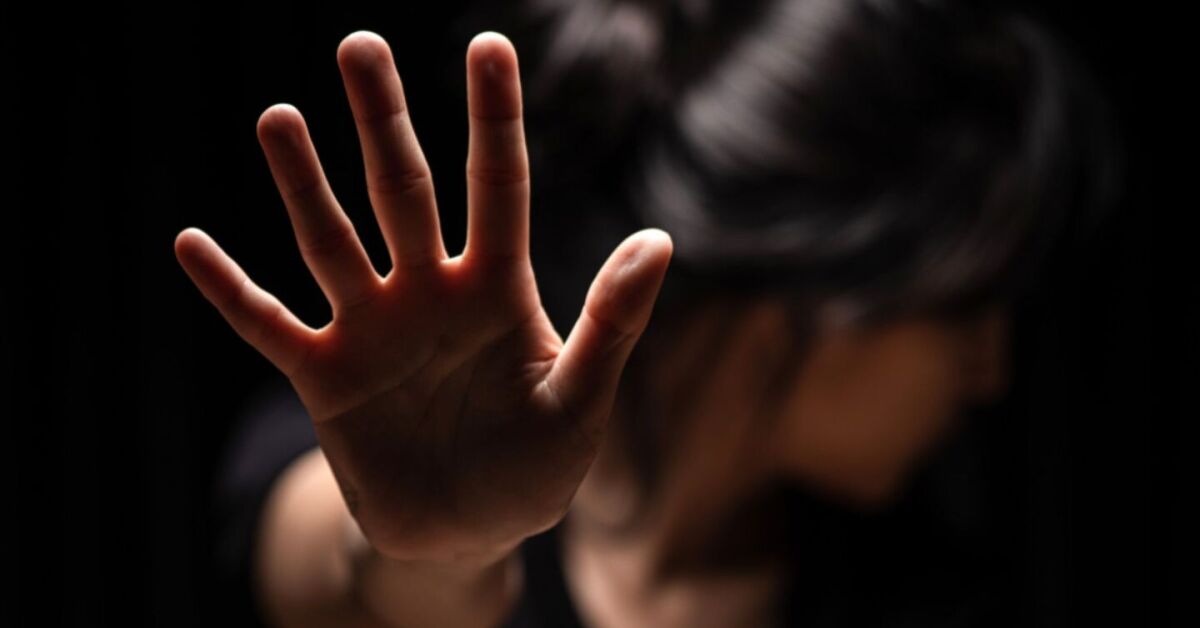 imagem ilustrativa de uma mulher com a mãe para frente, simulando uma tentativa de estupro. Foto: Rperodução/Internet