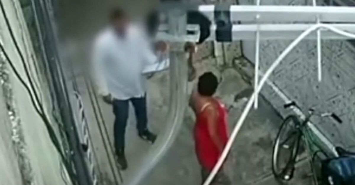 Momento em que falso vendedor fala com idosa. Foto: Reprodução